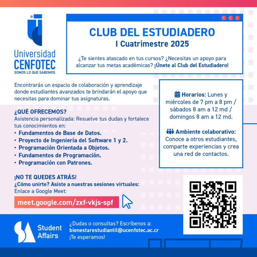 Club de Estudiadero En la siguiente imagen se muestra la información acerca del Club de Estudiadero Enlace a Google Meet Carolina Leonor Chaves Ballestero2025-11-26T14:39:35-06:00