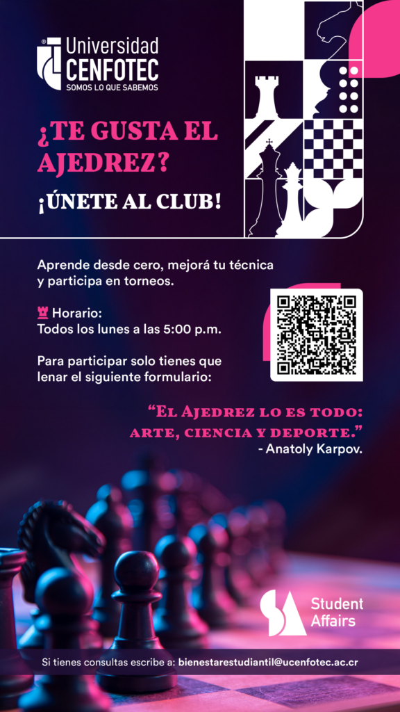 Únete a nuestro Club de Ajedrez En la siguiente imagen se puede observar la información del club de ajedrez Enlace a Información de Clubes Carolina Leonor Chaves Ballestero2025-11-26T14:39:37-06:00